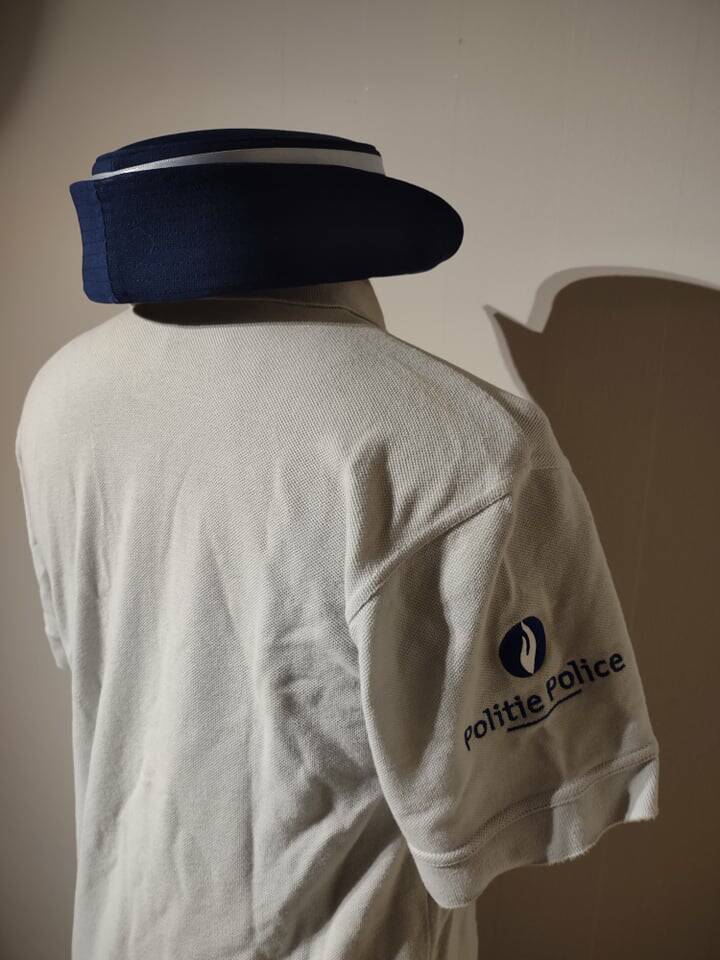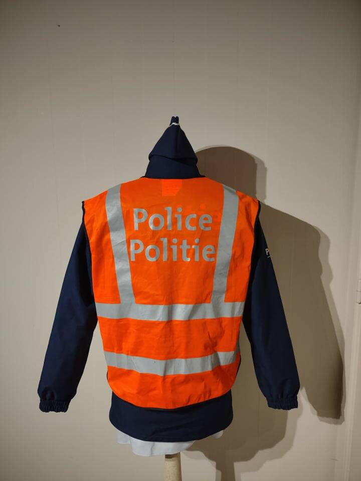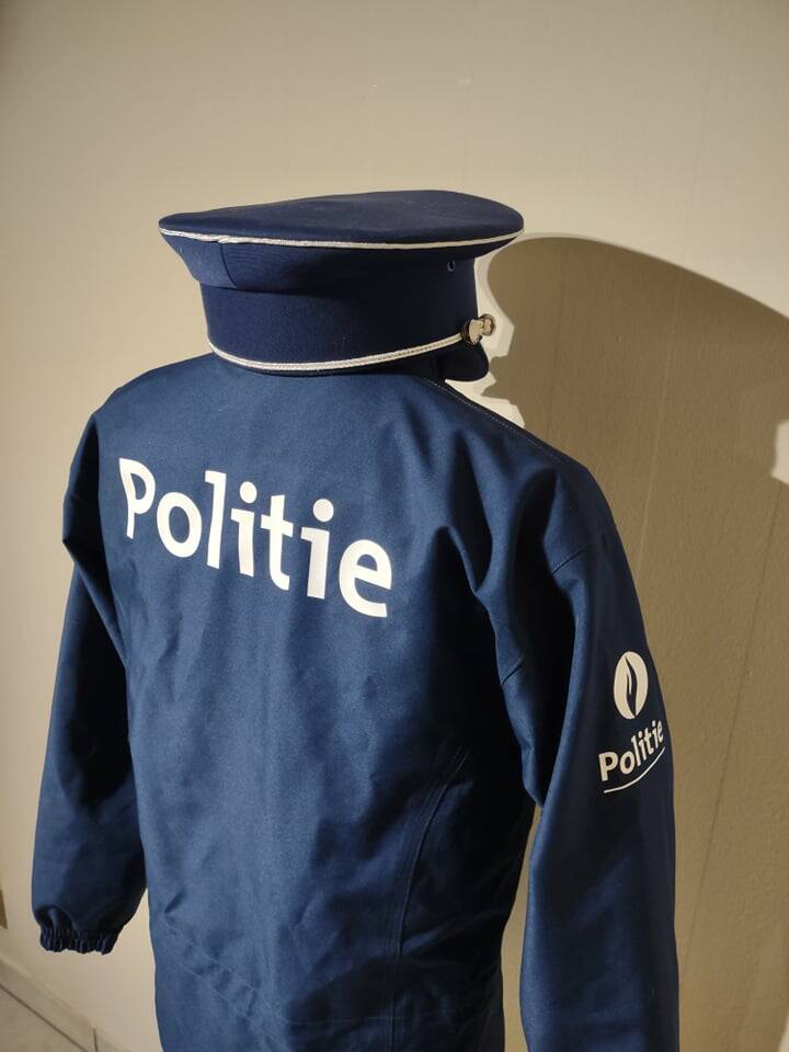 Uniform handhaving openbare orde met Nederlandstalig opschrift politie. In vele politiezones is dit uniform hernieuwd en kunnen nu ook de velcro graad en naambordjes op het uniform geplaats worden.