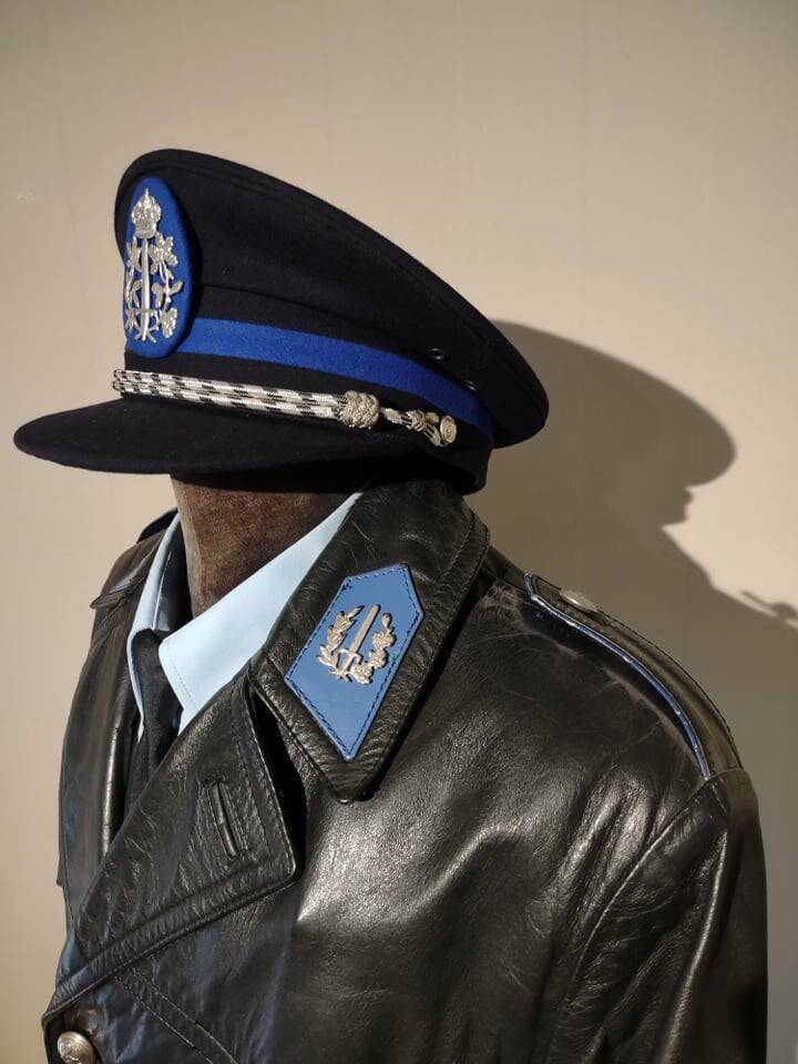 Deze lederen jas van hoofdinspecteur werd gedragen van 1980 tot 1996.
