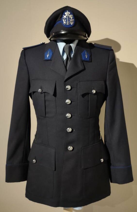 Deze wintermantel van stagedoend agent werd gedragen van 1980 tot 1996. ( Deze word nog gezocht voor de verzameling uit te breiden ).